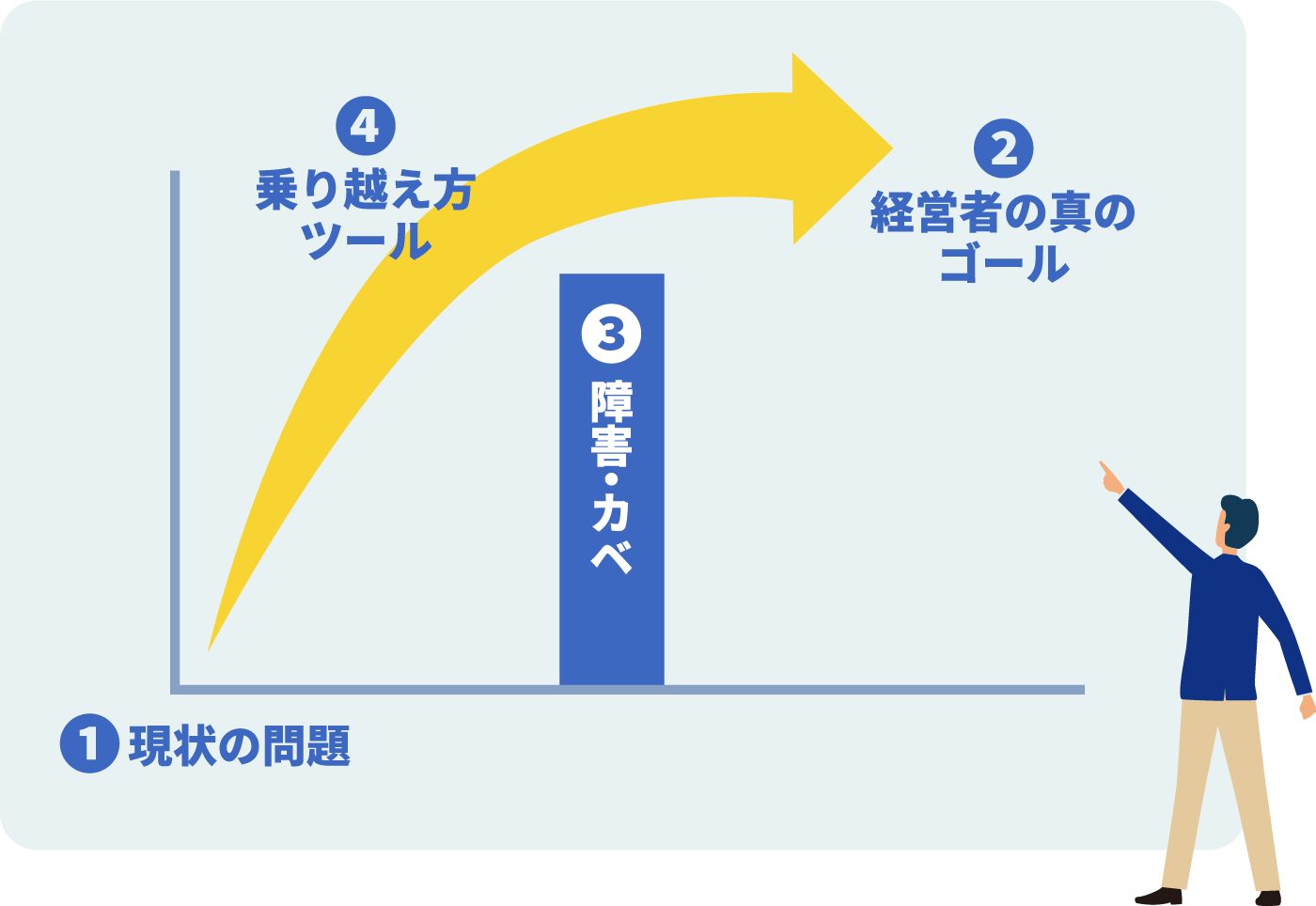 「❶現状の問題」「❷経営者の真のゴール」「❸立ちはだかる障害・カベ」をしっかりヒアリングして明確に、言語化・数値化しつつ、事業計画などを作成していないケースが多いからです。